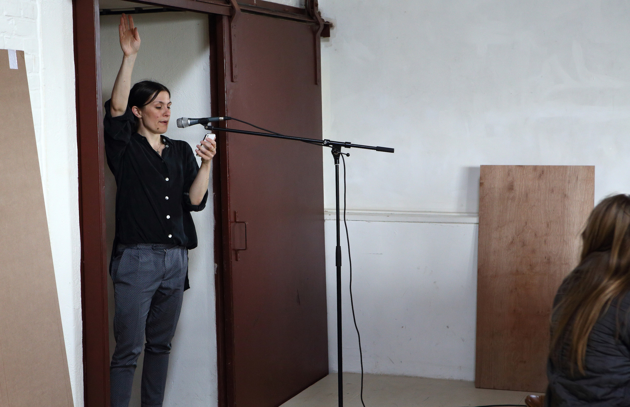 Litó created a sense of timelessness and placelessness in her work; we were left wondering when the piece would start and where it would take place. However, without fully realizing it, we were already active participants in the work, engaged with Litó's questioning the boundaries between performer and spectator, beginning and end; we were awaiting something that in fact had already begun. Further underlined when she followed along to her own prerecorded voice, reformulating and remediating her speech, and barely keeping up with her scripted words, it became clear that Litó was engaging the audience with multiple disruptions of place and speech, pointing us to ponder even further the separation between performer and self, and performer and audience. - Dr. Erin La Cour, Assistant Professor, Humanities and Literature, Vrije Universiteit Amsterdam